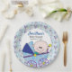Baby boy shower plate with the words It's a Boy featuring an adorable baby in a blue baby carriage.