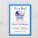 It’s a boy baby shower invitation featuring a cute baby in carriage design to make the shower even more special. Easy to personalise your special invitation.