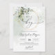 This modern trended baby shower invitation featured greenery foliage with eucalyptus in boho style aranged with gold glitter sparkles