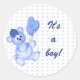 Cute blue bear with his cap holding blue balloons. Text is customisable for other occasions.