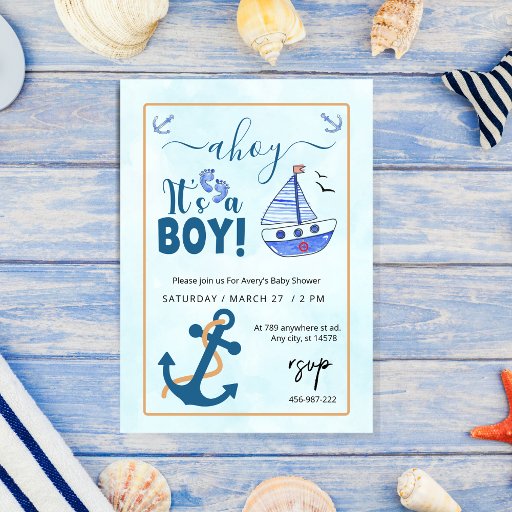 Ahoy it's a Boy Sailboat & anchor nautical baby boy shower invitations