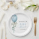 It's a boy blue balloon bow greenery baby shower paper plate.