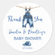 It's a boy blue jeans baby shower favour gift thank you stickers, cute baby denim jeans hanging pegged on a line blue jeans cap simple minimalist modern baby shower favour gift tags.