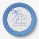 Celebrate the arrival of a little boy with this adorable baby shower paper plate adorned with a charming blue ribbon. Personalize the paper plate with your own special message to make it the perfect finishing touch to your baby shower celebration.