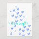 NewParkLane - Cute Postcard for either the announcement or as congratulations for the birth of a baby boy, featuring blue watercolor hearts, with quote in teel: 'It's a boy !' in elegant script typography.