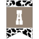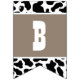 "IT'S A BOY!" bunting flag design. Features red and yellow gingham and black and white cow pattern. Great for farm animal theme baby showers.