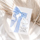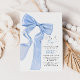 Celebrate the joy of welcoming a baby boy with this charming blue bow baby shower invitation. Featuring a beautifully illustrated satin ribbon and a soft colour palette, this design brings a touch of sweetness and elegance to your special event. Personalise the text to make it uniquely yours!