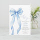 This pretty baby shower invitation features an elegant blue bow and stylish typography. Designed by Thisisnotme©