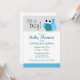 Cute custom baby shower invitations with an illustrated blue owl and the message "It's a boy!" at the top.