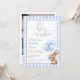 This charming baby shower invitation features a cute little baby bunny holding balloons and a blue gingham background. The reverse features your special photo and a registry QR code. Designed by Thisisnotme©