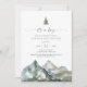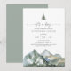 Invite friends and family to celebrate a little one on the way with this rustic invitation, featuring watercolor mountains and a sage green background.