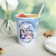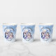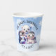 Cute it's a boy paper cups for a winter animals themed artic polar baby shower. Cute cartoon penguin, seal and polar bear. Blue background with white snowflakes. Oh Baby, brrrr.
