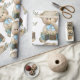 This wrapping paper feature the words "It's A Boy" in a unique print font with brown letters blue outline with a teddy bear sucking his thumb playing with blocks that spell the word "Boy" in this baby boy theme and style. All wrapping papers are offered in four types of premium paper and five different sizes. Has a softer surface and dull finish with full colour edge to edge printing on 60lb, text weight matte paper. Great for all types of gift wrapping for anything, from birthdays to graduation, weddings to anniversaries.