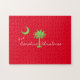 This challenging Christmas jigsaw puzzle is sure to keep even the most avid puzzlers busy! The puzzle features the South Carolina State Flag with the Palmetto Tree and Crescent Moon in bright green. The text reads "It's a Carolina Christmas" in white lettering on a festive red background. Celebrate the holidays in Southern Lowcountry style with this unique jigsaw puzzle that is the perfect gift for any South Carolina resident, teachers, neighbours, host/hostess, and co-workers! Also makes a great travel companion for those holiday family vacations! The puzzle is available in multiple sizes. Please browse our complete collection of "South Carolina" and "Lowcountry" gifts, apparel, home decor, greeting and holiday cards, and much more! #SouthCarolinaGifts #SouthernGifts #LowcountryGifts #CarolinaChristmas #HolidayJigsawPuzzles