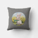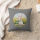 This is a pillow with a cute rabbit sitting on it.