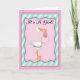 Announce your little bundlesof joy with this pink and green card with a stork holding an African American baby girl.