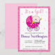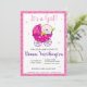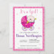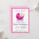 It's a Girl baby shower invitation featuring an adorable baby girl in a baby carriage with a border of pink spirals.