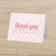 This baby shower thank you card features a pastel pink and white gingham check background, evoking a sense of southern charm. The message "thank you" in stylish cursive lettering ensures the thank you card is eye-catching while maintaining an air of casual elegance. The thank you card reflects a classic preppy yet contemporary feel, suitable for celebrating the mum-to-be with a timeless design.