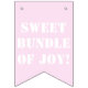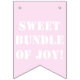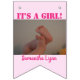 One-of-a-kind Welcome to the World It's Girl announcement bunting banner in pink, green, white. Personalise Pink Flags 2, 3 and 15 with baby's name, birth stats and photos. Or, leave cute baby feet images as is. Sweet Bundle of Joy is written on pink background in white stencil text on both ends of banner. These are nice celebration bunting banners with large sturdy flags for hanging outdoors or can hang indoors in large area. Original Photography and Graphic Design Copyright © 2010, 2018 TamiraZDesigns.