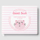 NewParkLane - Sweet blush pink striped baby shower guest book, with a cute pink cat.