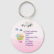 A birth annoucement keychain with a cute nursery style illustration with an ark filled with wild animals and a butterfly flying overhead and a friendly whale spouting water below. Some blue clouds float on by. Set on a light pink ombre background.
