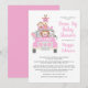 If family and friends can't be close together, celebrate the modern mother-to-be with a drive by baby shower. This cute pink baby girl shower invitation features an illustration of baby zoo animals (lion, elephant, zebra, monkey and giraffe) piled into a safari vehicle and "Drive By Baby Shower" and the mother's name in coordinating pink script. You can personalise the shower details, such as where and when to drive by, refreshment and gift areas, any social distancing or other safety precautions, whether there will be a later online event to unwrap gifts, registry and a contact for more information. You can also change the "It's a Girl!" text on the vehicle and the shower date on the license plate, or leave blank.