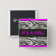 "IT'S A GIRL!" Hot pink and zebra stripes button