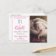 Celebrate the birth of your new baby girl with this sweet and adorable "It's a Girl!" Baby Girl Birth Announcement Postcard. Replace the photo with your newborn baby's photo. Customise the font and colour of the text with your own choice or keep this popular style of typography simply by using the edit menu. Put you name & return address on the back, as well as your signatures for preprinted convenience and easy send out.