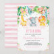 It's a Girl Jungle Safari Pink floral Baby Shower Invitation