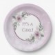 It's a Girl, Mauve Roses Baby Shower Paper Plate