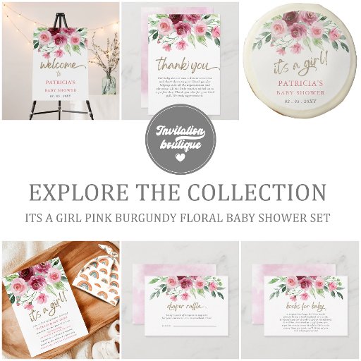Its a Girl Pink Burgundy Floral Baby Shower SetDesigned by Maria G