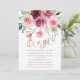 Its a girl Modern Pink Burgundy Floral Baby Shower Invitation