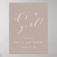 Simple and elegant baby shower welcome sign features "it's a girl" in white modern calligraphy lettering on a neutral beige taupe background. Personalise with your event name and date beneath.