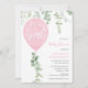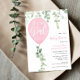 It's a girl pink balloon eucalyptus baby shower invitation