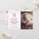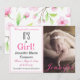 Celebrate the birth of your new baby girl with this sweet and adorable "It's a Girl!" Baby Girl Birth Announcement. Replace the photo with your own. Customise the pink and black font and colour of the text with your own choice or keep this popular style of typography simply by using the edit menu. A soft pink and white floral pattern is featured on the back of the invitation. Other colours and patterns, matching stickers, envelopes, and return address labels are available.