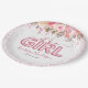 Cute girl baby shower paper plates featuring a simple white background, sparkle glitter & confetti, pretty pink watercolor florals, the saying "it's a girl", the name of the mum-to-be. and the date of the celebration.