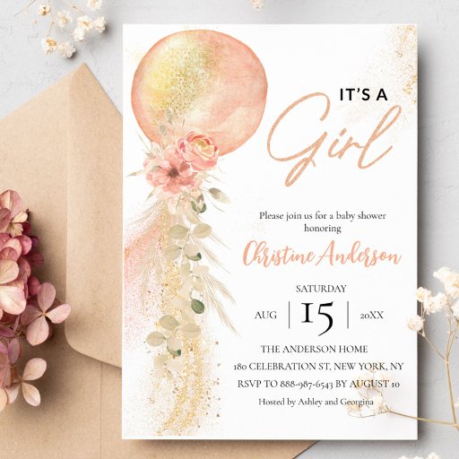 It's a Girl Pink Balloon Eucalyptus baby shower Designed by Fatima Zahra SADAK