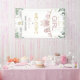 It's A Girl Pink Boho Watercolor Clothesline Baby Shower Welcome Banner. A charming and adorable baby shower banner featuring a cute clothesline with hanging baby girl outfits in soft blush pink tones, beautiful watercolor eucalyptus greenery, and rustic boho accents. Personalize with the mother's name, date, and time to welcome guests in style. Perfect for baby shower celebrations, gender reveal parties, or nursery decor. A thoughtful gift for the mom-to-be or baby shower host. Customize all text fields to create the perfect welcome sign for your special day.