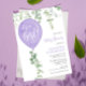 It's a girl purple balloons eucalyptus baby shower invitation