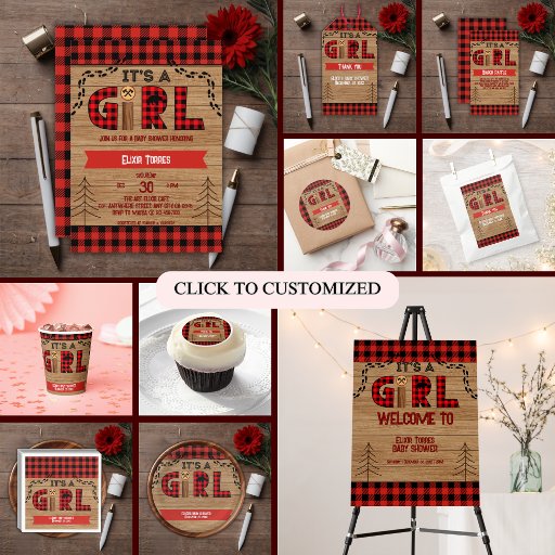 The It’s a Boy Rustic Wood Plaid Baby Shower Collection blends rugged, natural elements with cosy plaid patterns, creating a warm and inviting atmosphere for your celebration. Featuring rich wood textures, classic red and black plaid, and charming details like forest animals and log slices, this collection is perfect for welcoming your little outdoorsman with a rustic touch.