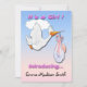 It's a Girl Stork Birth Announcement features a light blue and pink and pink gradient background, a stork carrying a baby Girl flying by a cloud. Stylised text is It's a Girl, Introducing. Stylish & trendy Birth Announcement is the perfect way to introduce your new bundle of joy! Available in two sizes; 5x7 and 5.25x5.25. Add your details to the front and back by simply choosing the "Customise it!" button to begin adding your event details, font style, font size & colour, and wording. Matching items including Birth Announcement postage, address labels, envelope seals, are also available in our shop.