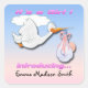 features a light blue and pink and pink gradient background, a stork carrying a baby Girl flying by a cloud. Stylised text is It's a Girl, Introducing. Just add your new baby's name! Envelope seals Perfect for It's a Girl Stork birth announcements! Matching items including birth announcement, postage, are also available in our shop.