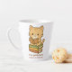 One of a kind teacher coffee latte mug featuring a cute kitty reading a book on top of a stack of books and an "it's a good day to read a book" headline. Can be personalized with name, class and / or school's name.