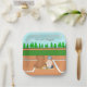 Cute little baby boy sitting next to a teddy bear on a baseball field with hat, glove and ball boy's baby shower party plates.