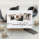 Elegant holiday photo card features three square photos in a collage layout, with "it's a wonderful life" is overlaid in crisp black script and block lettering. Personalise with your custom greeting, your name(s), and/or the year beneath. Cards reverse to a neutral botanical patterned background. A chic and minimalist choice for elegant holiday greetings.