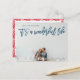 It's a Wonderful Life Holidays Photo Postcard Script in Navy Ice Blue lettering. back has a pretty floral border. Lettering style. Big photo design. Happy, festive design. Its a wonderful life. flowers. red and white. floral frame.