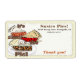 Available in hats,shipping labels,letter heads,stickers,shirts,aprons,tote and shopping bags,flare buttons,cutting boards,serving tray,favour/take out boxes and puzzle coasters.