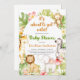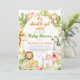 This is funny baby shower invitation featured cute safari animals with fresh tropical greenery - gender neutral