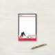 For sports lovers and hockey fans everywhere It's always time for Hockey with 4" X 6" Post-it® Note pad. This new design it an updated version of the original, "It's All Fun & Games until Somebody Looses A Tooth..THEN IT'S HOCKEY". This sporty design has the silhouette of a hockey player. The background colours, red and black shown here, can be customised to the colours of your favourite team. You can also add a personal touch by adding a name.