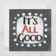 "It's All Good" is a fun text design with a white accent shape surrounded by white whimsical textured dots.